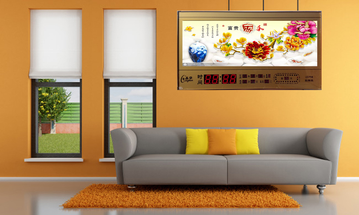 超薄鋁合金邊框,七彩燈顯示更漂亮,客廳裝飾日歷掛鐘