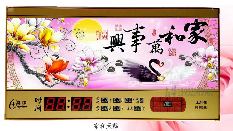 新房客廳裝飾日歷掛鐘,家和風(fēng)景萬年歷,超薄七彩燈光更漂亮